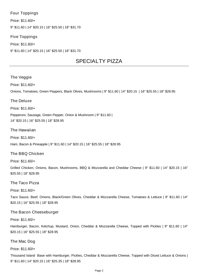 Grilled chicken, onions, bacon, mushrooms, BBQ, Mozzarella and Cheddar cheese