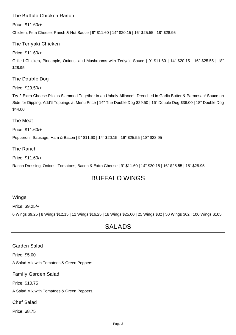 Grilled chicken, Feta, ranch, Buffalo sauce and Mozzarella cheese
