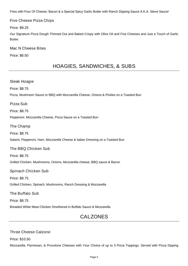 Fries with cheese, bacon and special spicy garlic butter with ranch dipping sauce A.K.A Steve sauce!