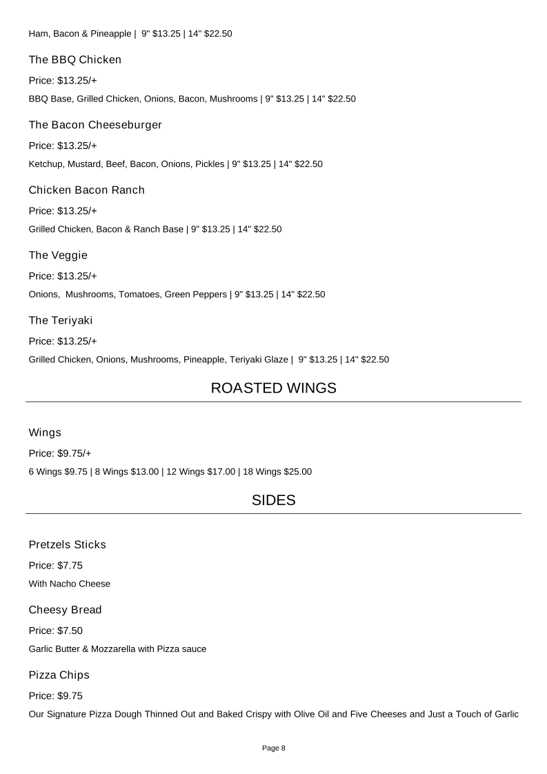 Grilled chicken, mushrooms, onions, BBQ sauce and Cheddar cheese topped with bacon