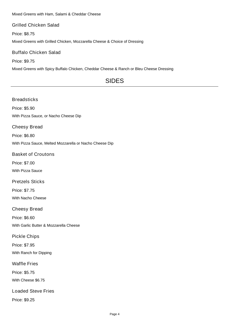 A salad mix with spicy Buffalo chicken, Cheddar cheese and choice of ranch or Bleu cheese dressing