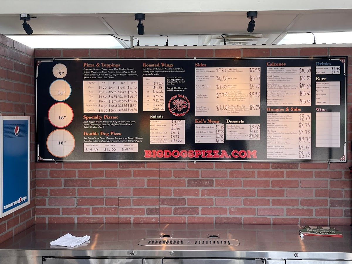Pico sauce, beef, onions, jalapenos, onions, black and green olives, Cheddar and Mozzarella cheese